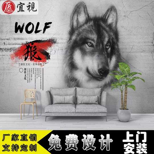 水泥墙坚持励志狼性背景墙壁纸手绘狼图腾电视背景墙纸办公健身房 阿里巴巴找货神器